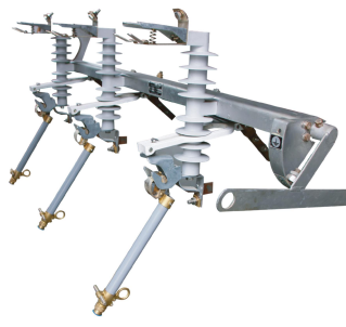 1. 该跌落式熔断器三相共座,单独操作,可三相联动自动接地。在合闸状态无法接地;在接地状态无法合闸,无误操作。