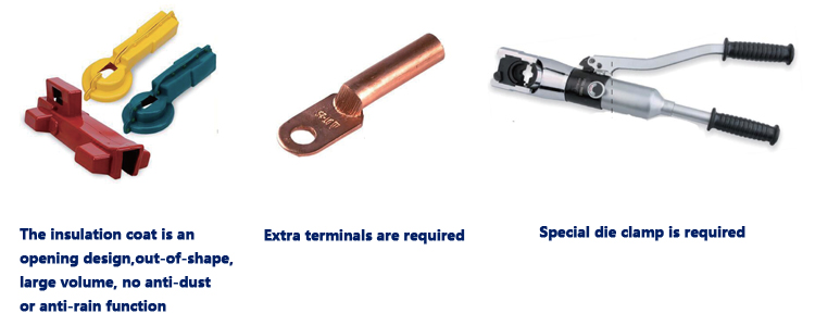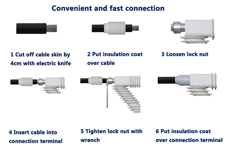 Compared with normal product connection mode, our company’s mode eliminates mounting bolts, copper and aluminum terminals, no professional die clamp is required, saves construction time while reducing cost. The insulation coat becomes more beautiful while its rain-proof performance, dust-proof performance and insulating property becoming better.