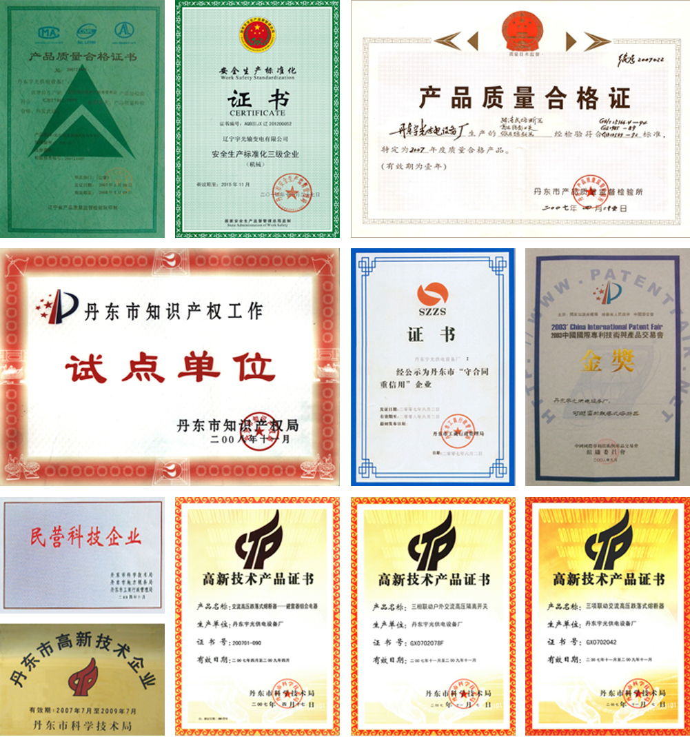 Liaoning Yuguang Power Transmission Co.,Ltd is established in 1999 and its predecessor is Dandong Yuguang Power Supply Equipment Factory. When the company is just established, it focuses on product quality and makes great efforts to develop independently innovative products. After it is verified and admitted by professional field, it increases capital investment and enlarge company scale in July 2002. And it changes its name. The company covers 11, 800sqm, among which the construction area is about 4,800sqm. The company integrates the product research and development, manufacture and the sales of high-voltage electrical apparatus and low-voltage electrical apparatus. It has passed GB/T19001-2008/ISO9001:2008 certification. It is a AAA credit rating company, a high-tech company and a privately operated science-and -technology company. It has over ten years experience and has accumulated rich research and development force and exquisite manufacture technology. It has made technology communication and cooperation with international famous companies. Because of its emphasis on the patented products development for many years and its high output frequency, it has been praised as Intellectual Property Right Work “Test Unit” of Dandong City.