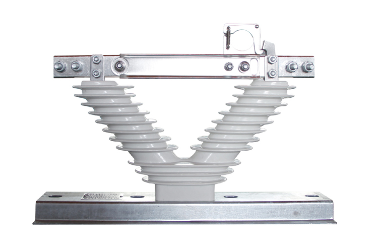 绝缘子采用了电气化铁路使用的27kV高压的绝缘材料,具有优良力学性能、电性能和耐化学腐蚀性能,代替传统的瓷绝缘子及用硅胶做伞裙的绝缘子,具有良好的防爆性能和极强的耐污能力。爬电比距可满足Ⅳ级污秽等级要求。DGW9V-12型户外交流高压隔离开关将传统隔离开关的二个立柱形绝缘子改为一个V形绝缘子,此V形绝缘子由我公司自行设计,国内首创,其优点是:不会因为安装时因用力不当或户外长期使用造成安装板变形,以及线路电缆横向拉力导致的导电板与接线板接触不良,从而造成电力事故。该产品具有体积小、重量轻、不易破损、安装方便、使用寿命长的特点。
